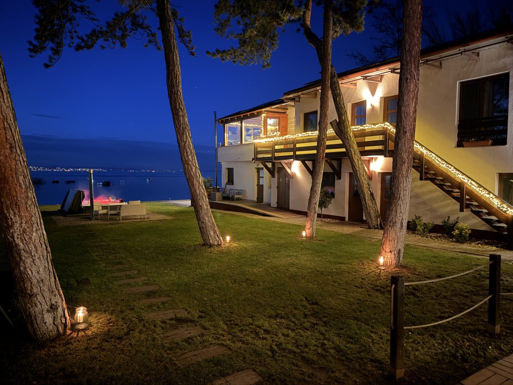 A csomag részeként választható háromfogásos vacsora különleges hangulatban várja Önöket: elfogyaszthatják stégünkön, közvetlenül a Balaton partján, gyertyafény mellett, vagy panorámás étkezőnkben, a kandalló meghitt fényénél. Az élményt tovább emeli a 2 x 30 perces ajándék masszázs és a 60 perces privát jakuzzi használat.