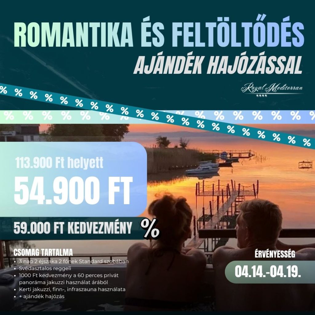 Töltsenek el együtt néhány felejthetetlen napot a meghittség, a kényeztetés és a balatoni életérzés jegyében. Ez a csomag tökéletes választás, ha szeretnének kiszakadni a hétköznapokból, és egymásra figyelve valódi közös élményekkel gazdagodni.